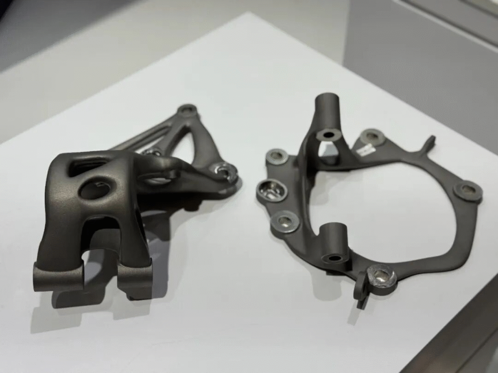 Based on high-performance titanium alloy materials and combined with topology-optimized structural design, BLT has developed a titanium-alloy automotive door hinge that achieves lightweight, high strength, and excellent surface quality. The component was showcased at Formnext 2025 in Germany.
