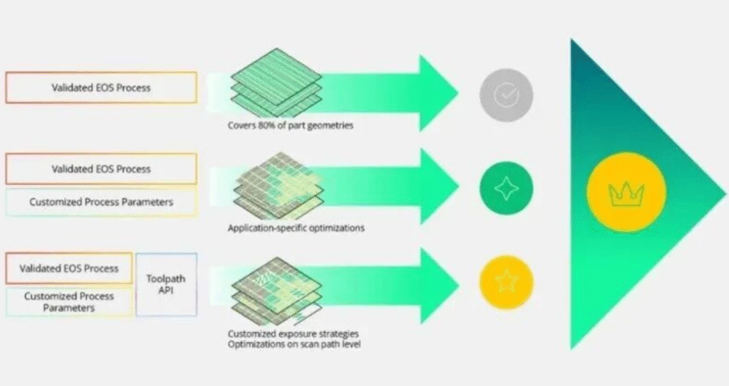 Moreover, this solution can be fully accessed through the Toolpath API of EOS. The EOS API enables customers and software partners to freely create customized scanning strategies.