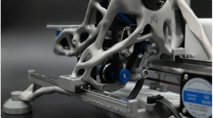 What makes this printer remarkable is its structural frame, which was created using generative design algorithms and manufactured entirely from aluminum alloy via 3D printing. The result is a lightweight yet extremely rigid framework, optimized for dynamic multi-axis motion and high-precision printing performance.