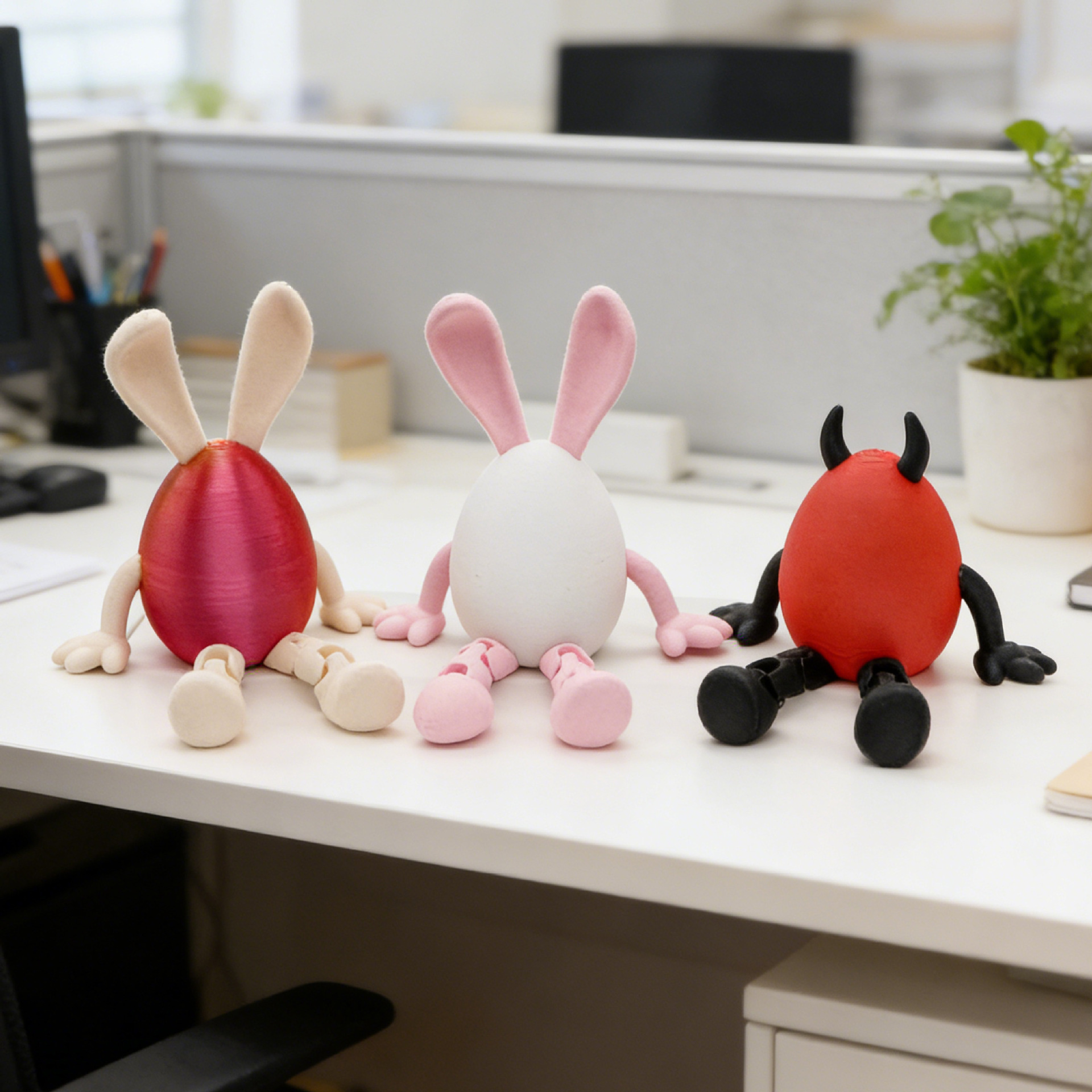 This movable Easter Bunny Egg 3D printed toy combines a bunny and an egg with a creative design. The movable joints add playful dynamics, making it a perfect festive gift or unique home décor. Ideal for Easter celebrations, gift exchanges, or holiday decoration.