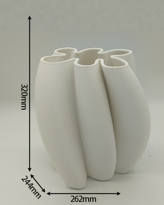 Geometrically shaped clay vase with fine 3D printed textures. Suitable for flowers or standalone display, highlighting modern minimalist style.