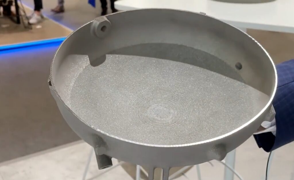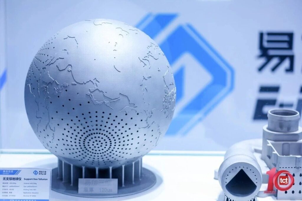 At the 2023 TCT Asia exhibition, Easy3D showcased its self-developed support-free metal 3D printing technology, capable of printing common materials such as AlSi10Mg and titanium alloys. A particularly representative part was the support-free printed aluminum alloy globe with a size of φ400×450mm. The structural characteristics of this part suggest the feasibility of achieving support-free printing for fuel tank structures.
